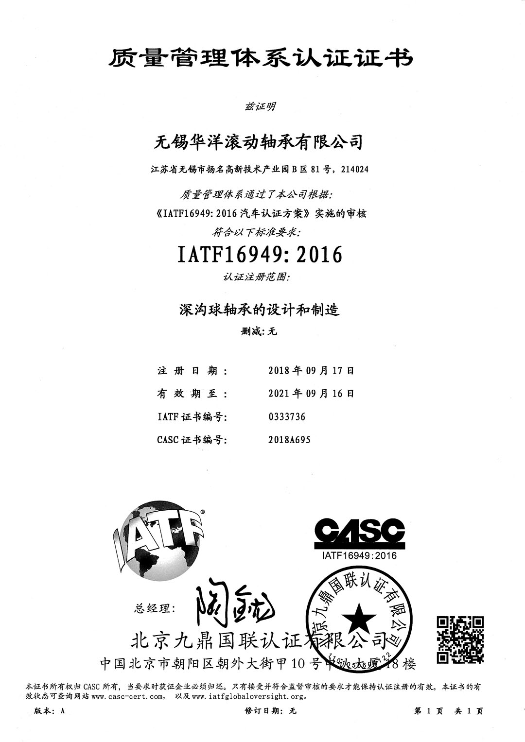 地址:无锡市扬名高新技术产业园内B区81号 电话:0510-85752869 传真:0510-85742214 邮编:214024 网址:xujjxin 红桃视频. com "红桃高清影视" 企业荣誉 您的位置:首页> 企业荣誉> 企业荣誉 荣获中国内燃机工业协会表彰(1) 荣获中国内燃机工业协会表彰(2) 荣获中国内燃机工业协会表彰(3) 体系与环境证书――2018-2021年-4 体系与环境证书――2018-2021年-3 体系与环境证书――2018-2021年-2 体系与环境证书――2018-2021年-1 专利展示 中国驰名商标 行业荣誉 年度最佳供应商 年度优秀供应商 共15条信息,分2页显示,当前在第1页 第一页 上一页 下一页 最后页 服务热线: 地址:无锡市扬名高新技术产业园内B区81号 电话:0510-85752869 传真:0510-85742214 网址:xujjxin. com 关于我们 公司简介 企业文化 产品展示 标准深沟球轴承 薄壁球轴承 单向球轴承 法兰轴承 双列球轴承 调心球轴承 微型球轴承 设备展示 精密测量 生产设备 性能试验 企业荣誉 质量体系 荣誉证书 Copyright © 2004-2021 无锡华洋滚动轴承有限公司 版权所有 苏ICP备05070275号-7 苏公网安备 32021302000760号.